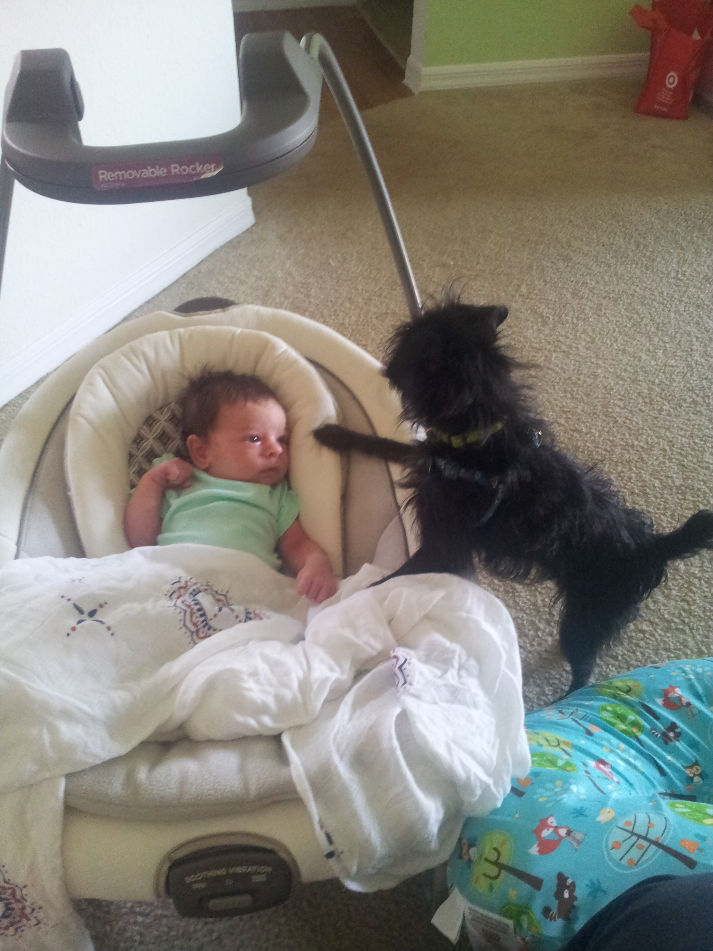 Eunee is treating Gavin with such care. She is so curious, licks him and follows us around when he is crying. She’s also constantly crossing her legs because I can’t do the stairs so well yet, so I don’t take her to the bathroom and she has to wait for Adam to get home from work.