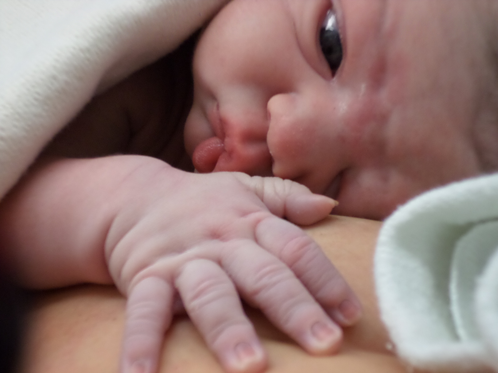 At just past noon, we walked into the OR (yes, walked!) I climbed up onto the very narrow bed on my own. Adam sat next to me, everyone suited up, the anesthesiologist did his thing. The next thing I knew, my legs were numbing up and they said ok, let us help you lay back, the screen went up. Everything was quiet. The next thing I knew, they said here he comes. I felt a little tugging and pressure, then, up above the curtain, like baby Simba, was Jake!