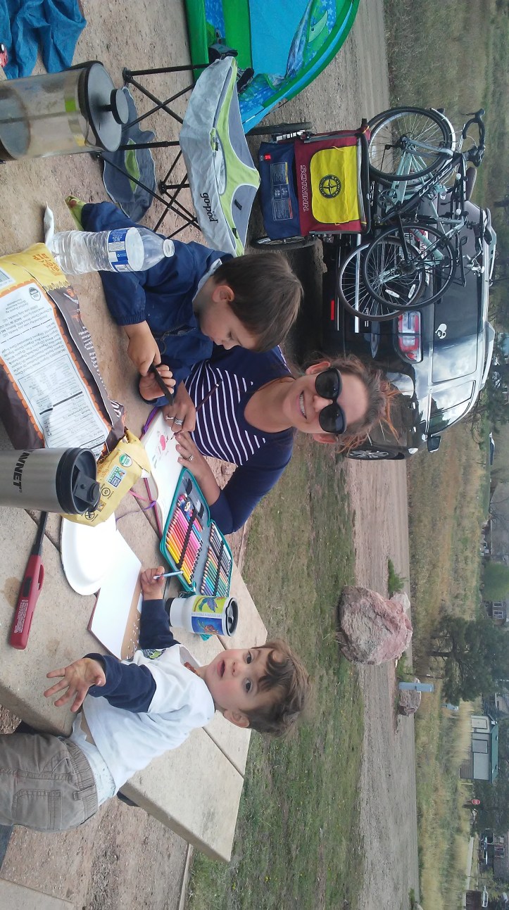The day time is great. There is a beautiful view, the boys have more dirt then they could dream of. The sun shines and beats down invigorating your body and soul. We have great food… Prepared chicken salad (thanks Michael!) fruit, veggies, guacamole, turkey burgers, waffles every day, coffee and tons of snacks. We go for walks and play with sticks. We color and have day time camp fires. We see deer and fish and ducks. We sing songs and laugh.