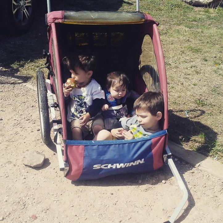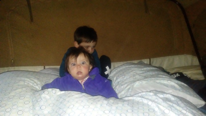 But then dinner is over and you begin to anticipate bed time. So, everyone fights and fights to get into their pajamas and wiped down with baby wipes because they are so flipping dirty, but there are no showers. Then we lay in bed and try getting all 3 to sleep…or just one for that matter.