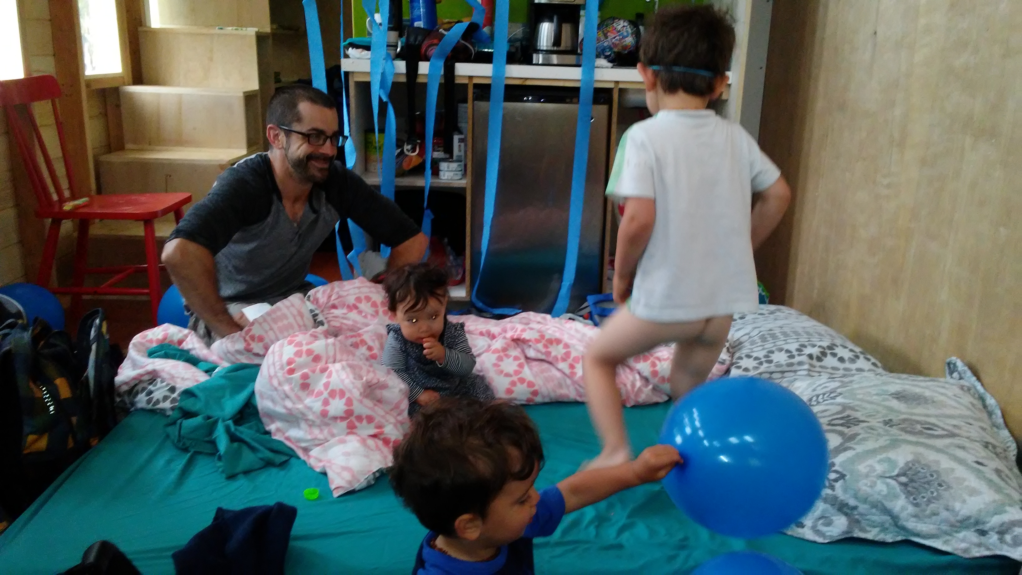 Usually we celebrate with the ground littered in balloons and streamers hanging from doorways. But due to our tiny home, we had to make some adjustments.