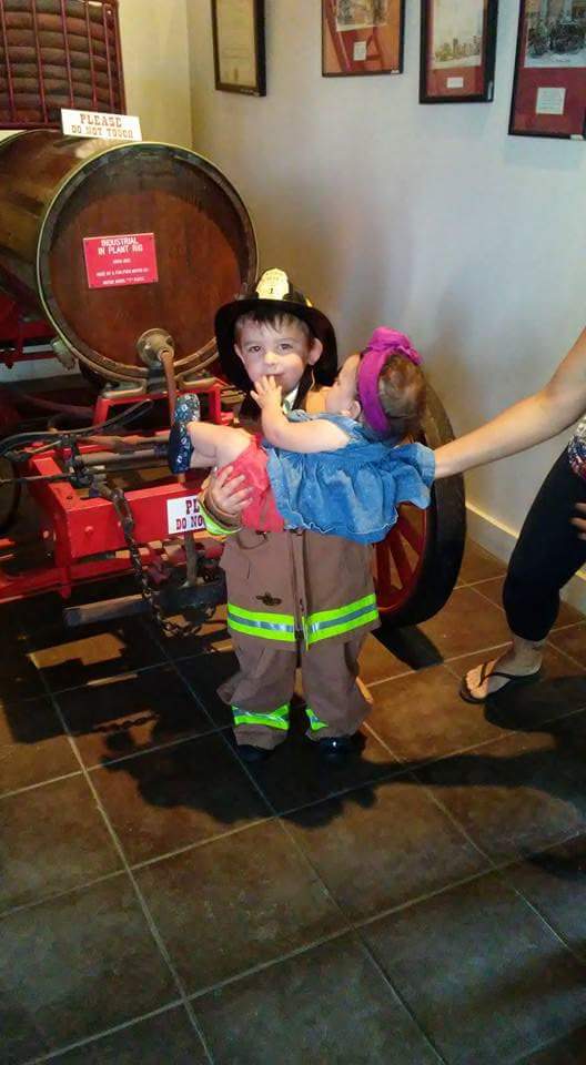 We went to the Firehouse Museum where Gavin became a fireman and saved Avilene!