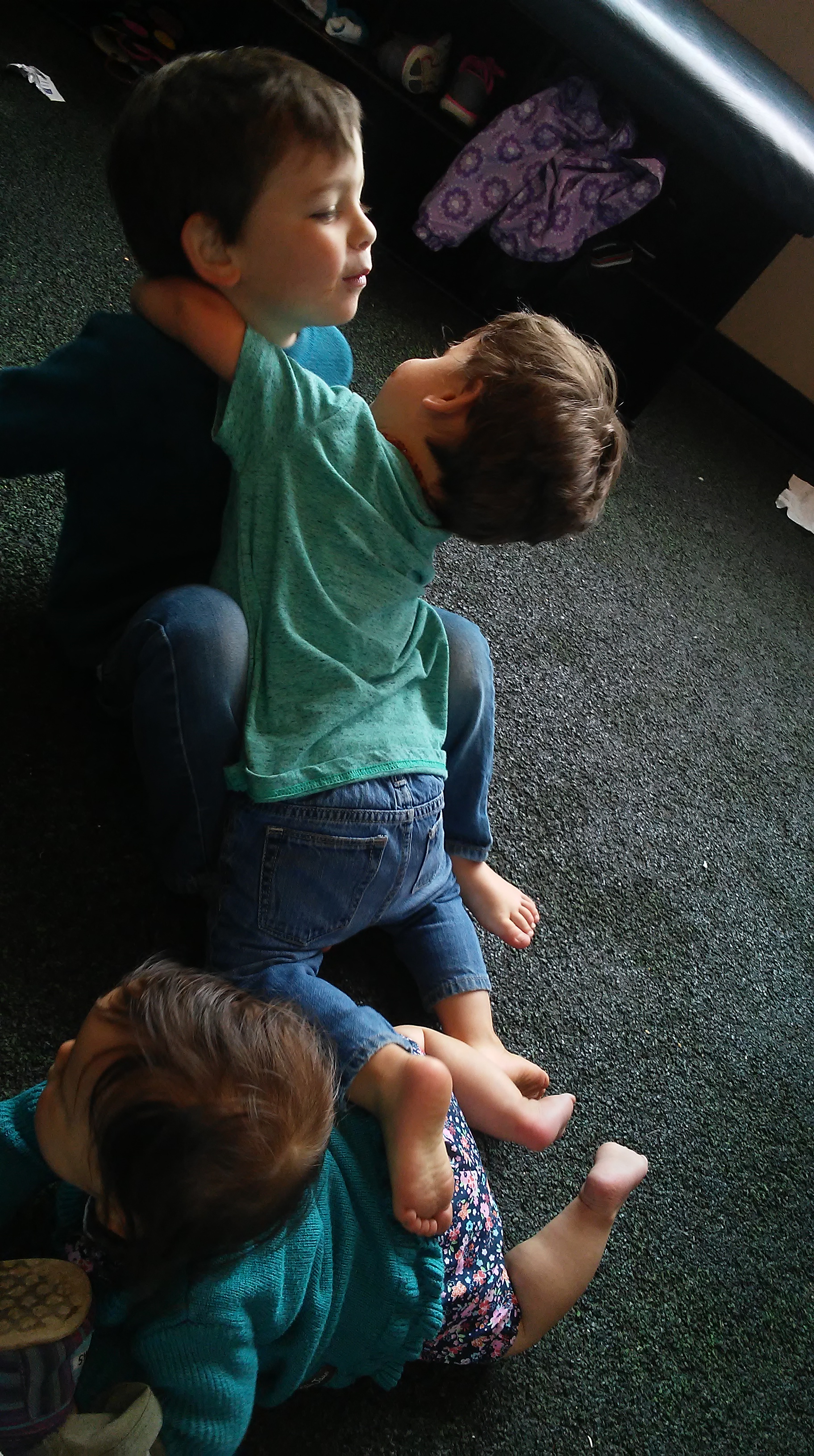 While at chickfila the boys may or may not have been so over being in the car and strapped in that they were lying on the floor in a pigpile while I was ordering food. I began to apologize to people for it and then just said, we’ve been in the car for two days…it is what it is.