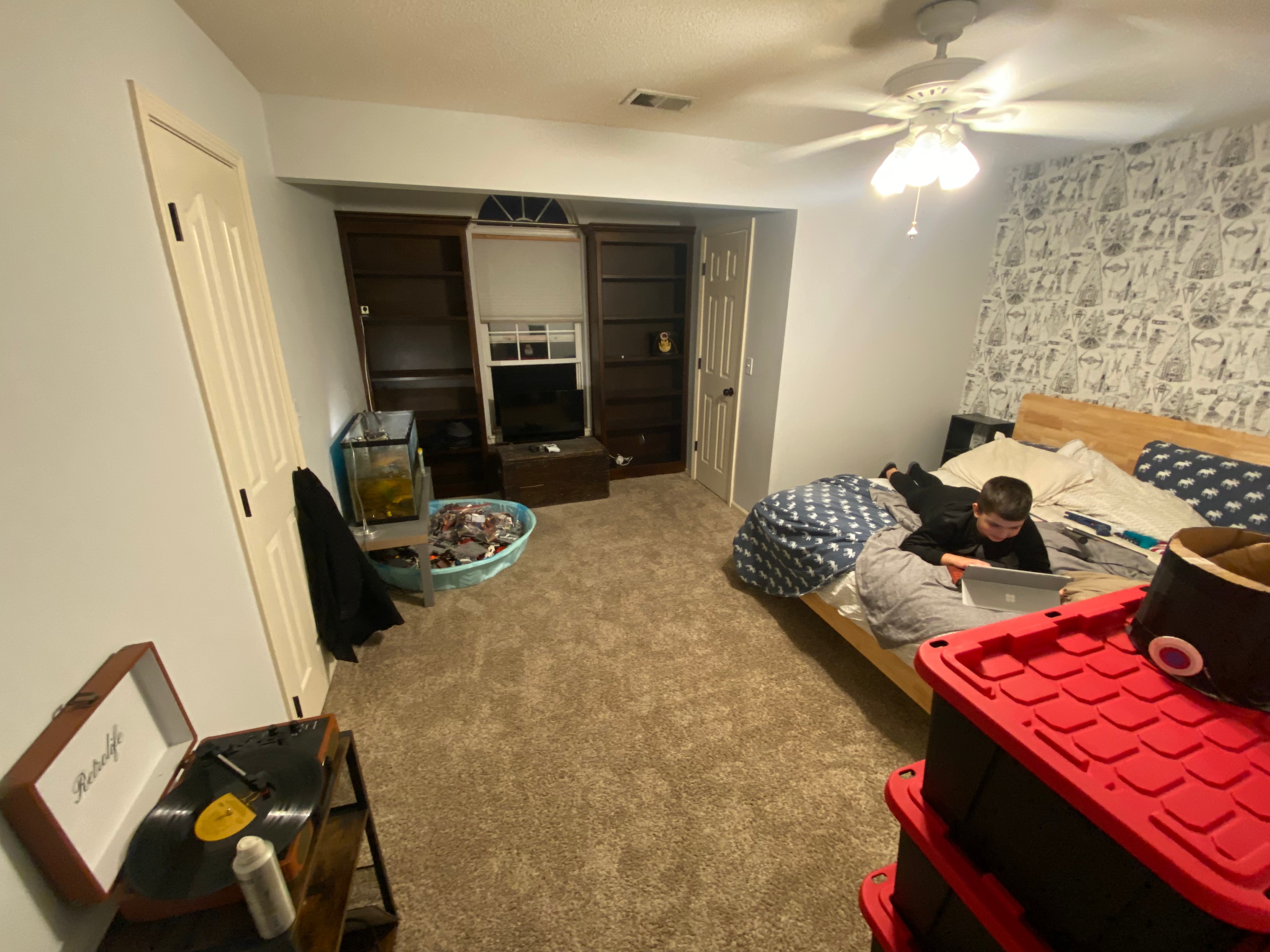 Four bedrooms… packed. Two bathrooms… stripped like a hotel that ran out of budget. Walls blank. Closets running on fumes. The kids have their labeled bins because Nicole is the kind of person who labels things and I have learned to appreciate this quality over the years. The garage looks like a very enthusiastic yard sale threw up on itself and honestly… I could not be more proud.